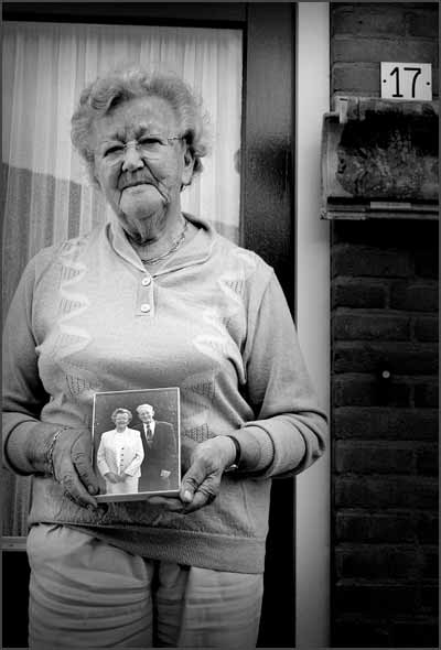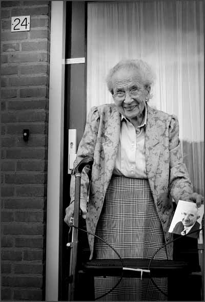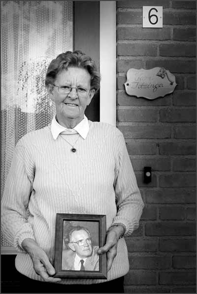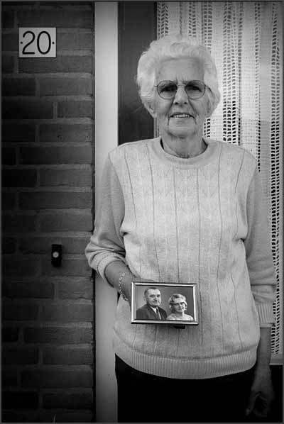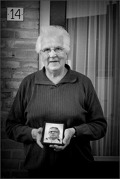Six widow's who are living in the same street; ‘De Boldert’ They are all holding a photo of their deceased husbands.