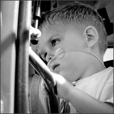 The name of this little boy is Pascal, he is always locked on his oxygen bottle.